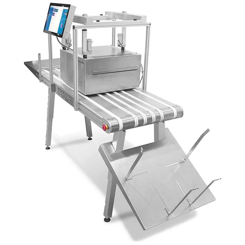 Designed for 24/7 production, the T3-OPX mounts on host systems with runs of up to 18 ips (90 feet per minute), automatically adjusting for variances in speed, timing, and spacing. Integrated aerosol fans and an optional material cleaner help to maintain stable, high-quality production.
