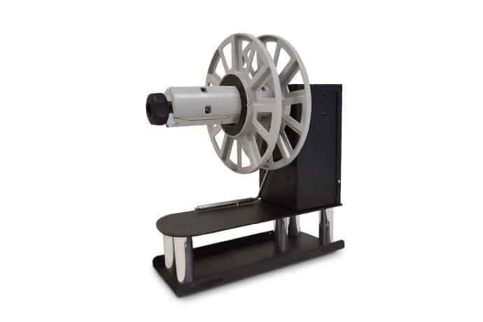 The automatic label unwinder (UW6000A/P) increases the input roll capacity. Rolls are loaded with labels facing out.